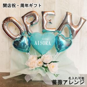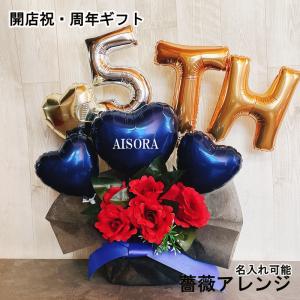 バルーンアレンジ 開店祝い 名入れ フラワーバルーン 赤 花以外 周年 薔薇 オープン バラ 電報 誕生日 お祝い プレゼント お店 記念日 ピンク 青 バルーンギフト