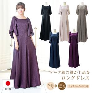 マザーズドレス 結婚式 ドレス ロングドレス フォーマル 親族 花嫁 母 薔薇柄ストレッチジャガードケープ風 ドレス 30代 40代 50代 op3643