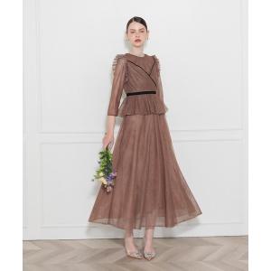 チュールフリルペプラムドレス パーティードレス 結婚式 ワンピース Vネック Iライン シアー ブラウス
