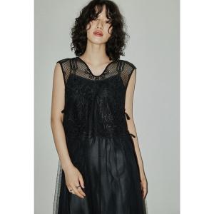 ドレス 「LEJA」スパンコール刺しゅうボタニカルマーメイドケープボレロ付きプチハイネックパフスリーブキャミソール2wayチュールワンピース 2点セッ