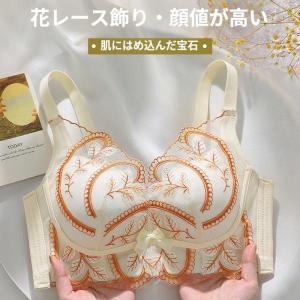 ブラジャーショーツセット 脇高 シームレス 花柄 ノーワイヤー 谷間 盛れる 育乳 バストアップ 補正脇肉 ブラセット 下着女性 上下セット