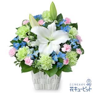 【誕生日フラワーギフト】花キューピット 女性 男性 彼氏彼女 夫妻 父母 ギフト プレゼント ユリとピンク色のバスケットアレンジメント