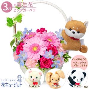 【3月の誕生花(ピンクガーベラ)】花キューピット 誕生日 お祝い 記念日 プレゼント ピンクガーベラのマスコット付きバスケット