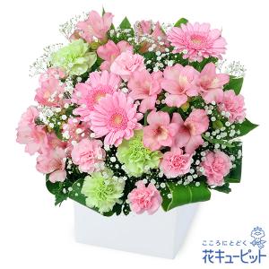 【お祝い】花キューピット 敬老の日 誕生日 記念日 結婚祝い 歓送迎 還暦 開店開業 卒業入学 生花 ピンクアルストロメリアのキューブアレンジメント