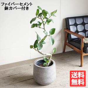 フィカス ベンガレンシス S字仕立て ベンガルゴムの木 観葉植物 グレーウォッシュ ファイバー鉢カバー付き 送料無料 即日出荷