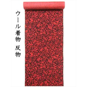 ウール着物 反物 u-33 黒エンジ地・辻が花風柄【訳有り】