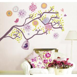 訳有り品 格安 ウォールステッカー 鳥かごと花 カラフル 壁シール かわいい フラワー ハート 送料無料