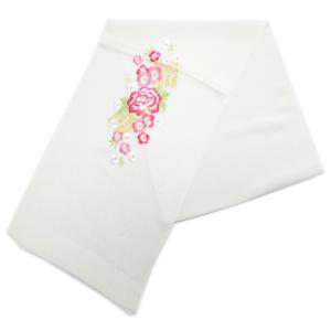【訳有り 少難あり】 帯揚げ 帯上げ 刺繍入り 正絹 白色地牡丹小桜源氏香 日本製 振袖 成人式 着物