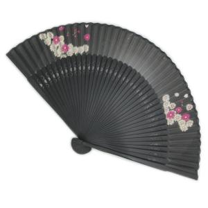 【訳有り 少難あり】 扇子 女性用 和柄 黒色地可憐花さくらんぼ×黒 箱入り 浴衣 着物 ゆかた きもの