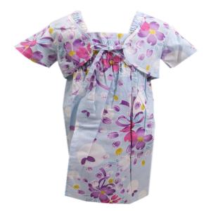 【訳有り 少難あり】 セパレート ボレロ サンドレス セット 浴衣風 キッズ 薄水色地小花チューリップリボン 3〜4才(100cm) 5〜6才(110cm) 7〜8才(120cm)