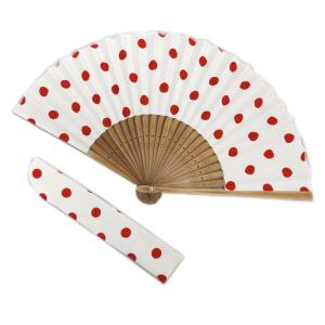 【訳有り 少難あり】 扇子 扇子袋 セット 女性用 オフホワイト白色地赤ドット 化粧箱入り 浴衣 着物 和柄