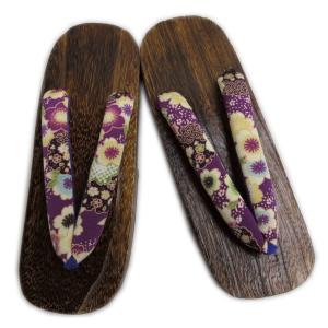【訳有り 少難あり】 下駄 桐 女性用 大きいサイズ LL 25.5cm 3L 26.5cm 焼桐茶台 紫色地桜さくら雪輪 浴衣 ゆかた 甚平 2L