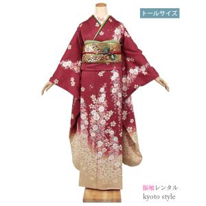 レンタル振袖 成人式 結婚式 結納 振袖 レンタル フルセット 振袖レンタル トールサイズ 赤 エンジ 着物 レンタル レトロ 貸衣裳 高身長 72028