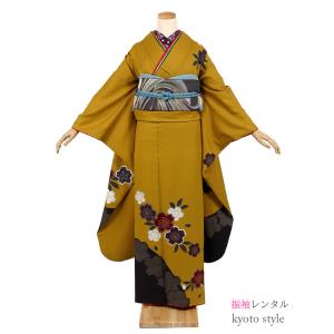 振袖レンタル 成人式 フルセット 結婚式 パーティー 振袖レンタル 貸衣裳 着物 レンタル シンプル 柄少なめ 女性 レディース カラシ マスタード 72110