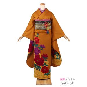 振袖レンタル 成人式 フルセット 結婚式 結納 振袖 レンタル 黄色 カラシ からし 牡丹 成人式振袖 着物 振り袖レンタル クラシカル レトロ 安い 72192