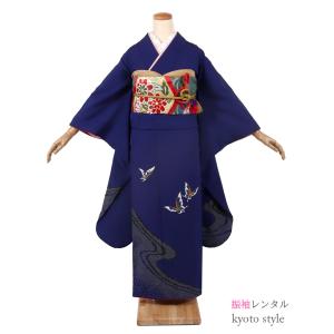 振袖 レンタル 成人式 青 ブルー 小柄 結婚式 卒業式 結納 きもの 振袖レンタル 着物 レンタル 小さいサイズ プチサイズ 柄少なめ 蝶柄 72218