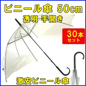 即納 50センチ 傘 ビニール傘50cm透明 黒骨・手開き 30本セット 8本骨