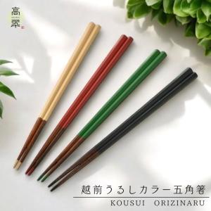 越前 うるしカラー 五角箸 先塗 Red Black 23cm オリジナル商品 日本製 マラス 木製 五角箸 モダン 送料無料