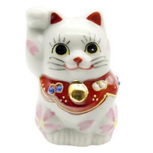 九谷焼 招き猫(右手金運招き猫)1.5号桜