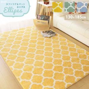 ラグ ラグマット カーペット 絨毯 エリプス 130×185cm 約1.5畳 北欧 風水 イエロー 金運 モロッカン柄 ホットカーペット対応 おしゃれ