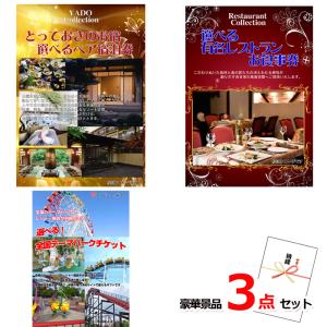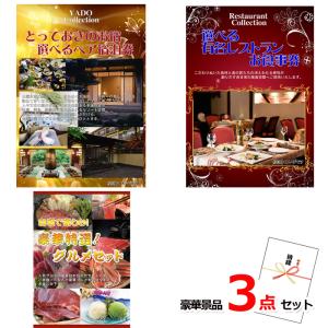 忘年会 新年会 ポイント10倍 ベストセレクション!選べるペア宿泊券&選べるレストラン&豪華グルメ豪華3点セット 景品パネル&引換券付き目録 15447
