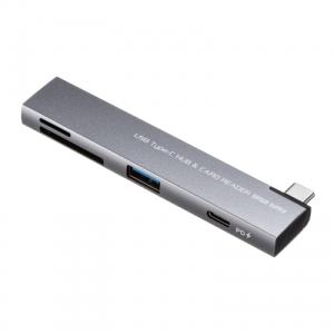 サンワサプライ USB-5TCPC31GM USB 5Gbps 2ポート スリム ハブ カードリーダー付き