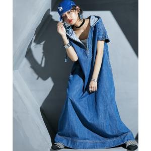 ワンピース 綿100%デニムパーカーマキシワンピース 「大きいサイズ有」GEVS.