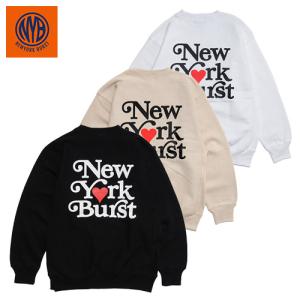 NEW YORK BURST NYB ニューヨークバースト スウェット トレーナー 裏起毛 ハートロゴ ブラック/ベージュ/ホワイト S-XL NYB LOVER CREW SWEAT