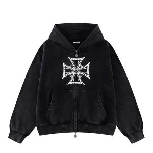 SUPPLIER サプライヤー ジップアップフーディ S,M,L ブラック/黒 パーカー クロス ラインストーン ストリートブランド DUSTY IRON CROSS RHINESTONE ZIP HOODIE