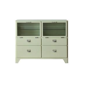CAGUUU マグネット対応ガラスドアキャビネット L120*W43*H98.5cm キッチンキャビネット 大容量収納 スチールラック 引き出しと棚付き