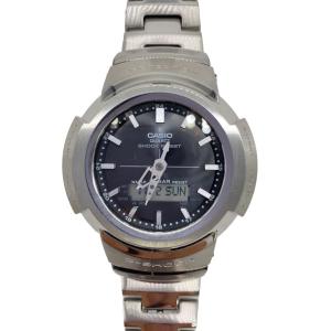 CASIO◆ソーラー腕時計_G-SHOCK/デジアナ/ステンレス/BLK/SLV