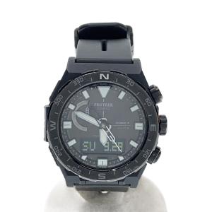 CASIO◆電波時計/ソーラー腕時計/デジアナ/ラバー/BLK/PRW-6800Y-1JF/PROTREK
