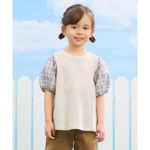 tシャツ チェックボリュームパフ袖Tシャツ キッズ 子供服 女の子