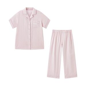 パジャマ ルームウェア 半袖前開きガーゼママパジャマ(先染めストライプ) レディース