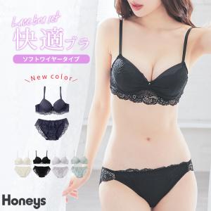下着 アンダーウェア ブラセット 花柄レース レース チャーム付き ソフトワイヤー レディース Honeys ハニーズ レース使いブラセット
