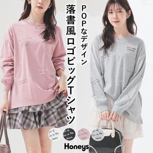 トップス Tシャツ ロンT 長袖Tシャツ ビッグTシャツ カットソー 長袖 コットン 綿 オーバーサイズ レディース Honeys ハニーズ 落書風ロゴビッグTシャツ