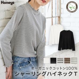 トップス Tシャツ ロンT 長袖Tシャツ カットソー 長袖 オーガニックコットン ハイネック シャーリング レディース Honeys ハニーズ シャーリングハイネックT