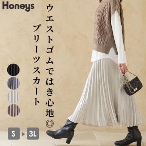 ボトムス スカート ロングスカート ロング丈 大きいサイズ プリーツスカート レディ SALE Honeys ハニーズ サテンプリーツスカート