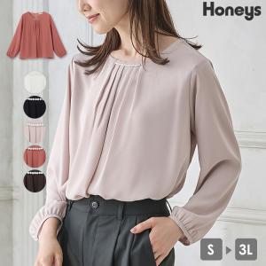 トップス ブラウス 長袖 長袖ブラウス 大きいサイズ オフィス きれいめ アクセサリー付き レデ Honeys ハニーズ パール付ブラウス