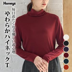 トップス Tシャツ ロンT 長袖Tシャツ カットソー 長袖 ハイネック 無地 レーヨン混 フライス シンプル レディース Honeys ハニーズ やわらかハイネックT