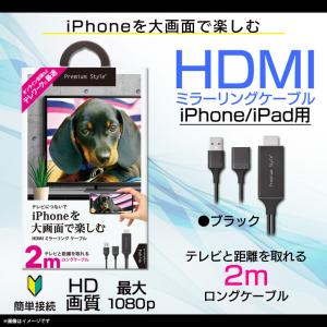 HDMIケーブル iPhone iPad 変換アダプタ PG-IPTV03BK 5948 HDMIミラーリングケーブル HD画質 Lightning 2m ブラック PGA