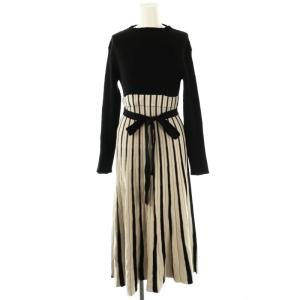 マーキュリーデュオ MERCURYDUO 配色チェンジリブロングスリーブニットワンピース ロング S ブラック ベージュ /HK ■OS レディース