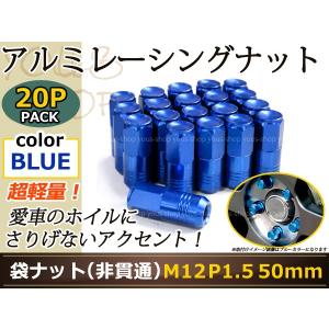 N-ONE JG1/2 レーシングナット アルミ ホイール ナット ロング トヨタ 三菱 ホンダ マツダ ダイハツ M12×P1.5 50mm 袋型 青 ブルー