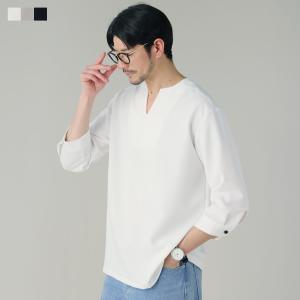 シャツ カジュアルシャツ メンズ 春 夏 七分袖 7分袖 半端袖 日本製 キーネック ノーカラー プルオーバー カプリシャツ キャンバス 綿麻ライク ゆったり 涼しい