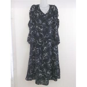 ◇ fifth フィフス 花柄 Vネック 長袖 ロング ワンピース ブラック ホワイト レディース