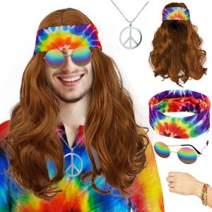 【並行輸入品】JoneTing Hippie Dark Brown Wig(1 Wig Cap +1 Hippie Accessories)