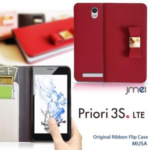 Priori3S LTE ケース 手帳型 本革 スマホケース リボン 手帳型ケース 手帳 全機種対応 FTJ152B FREETEL プリオリ3s カバー かわいい
