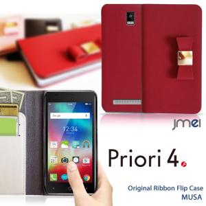 FREETEL Priori4 FTJ162D ケース 本革 リボン 手帳型ケース MUSA 手帳 スマホケース 全機種対応 フリーテル プリオリ4 カバー