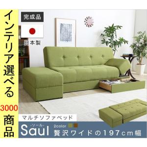 ソファベッド 198×98×76cm アクリル 引き出し付き 2人掛け 日本製 モスグリーン・ブラウン色 YHSH06SALSB