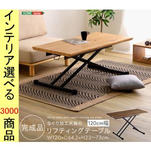 ローテーブル 120×64.2×73cm 波型淵 キャスター付き 高さ無段階調節可能 ガス圧昇降式 板壁風 四角形 ブラウン・ナチュラル色 YHSH23UDN120